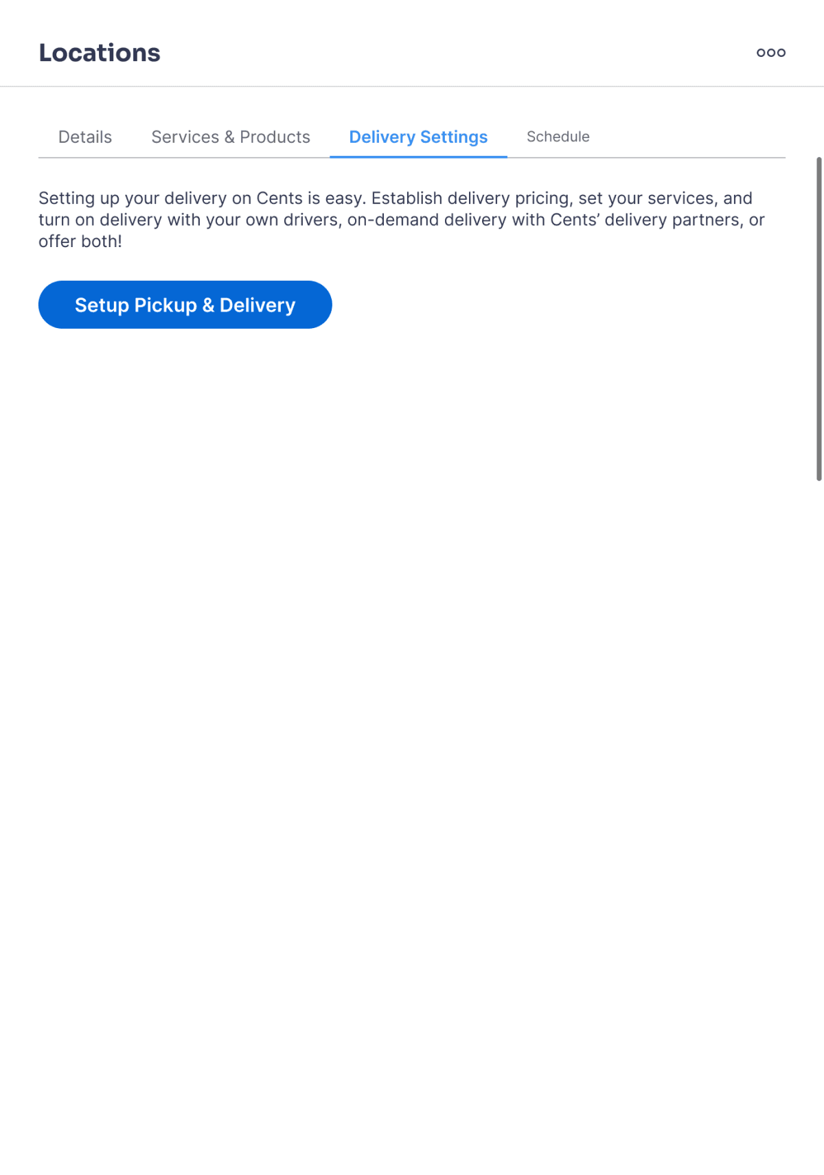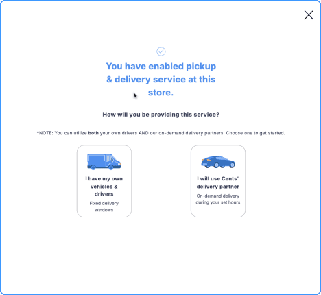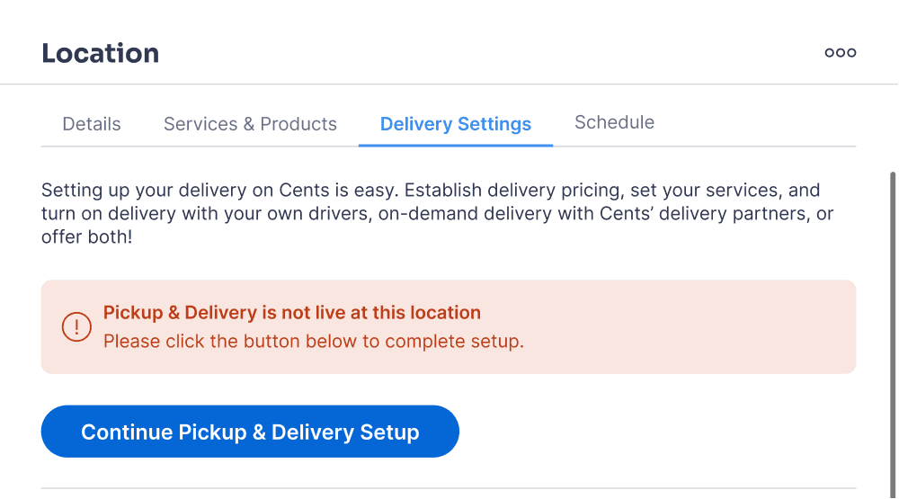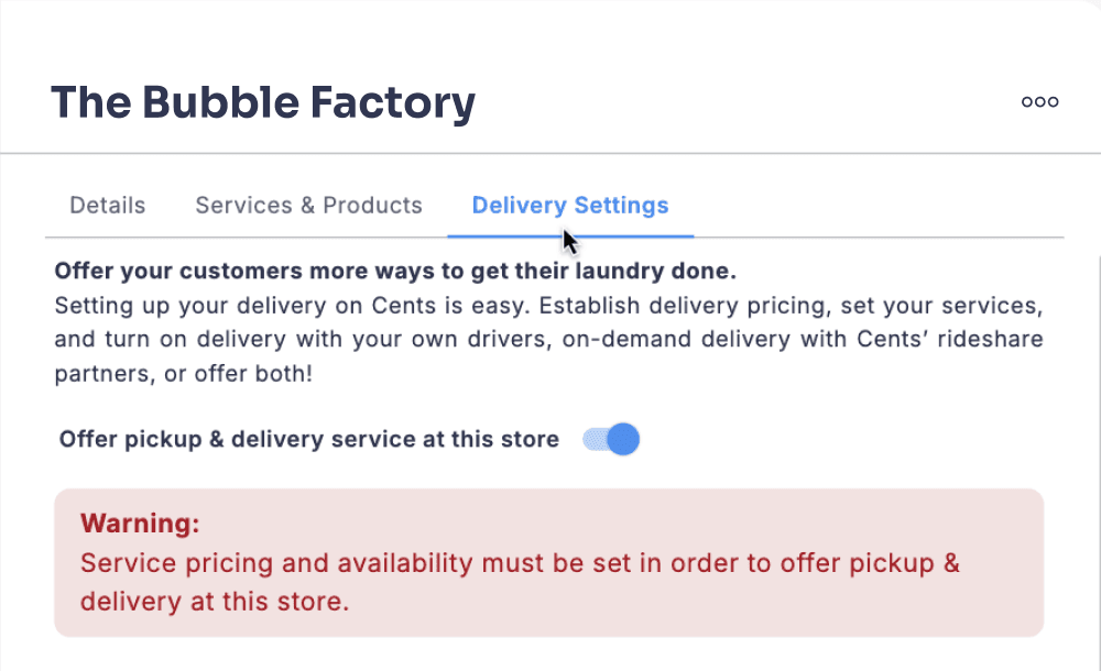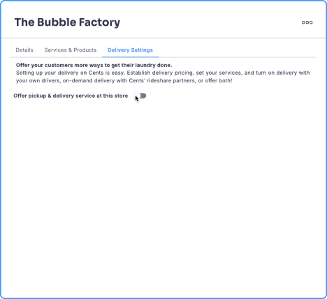Over 40% of Cents laundromat locations have pickup and delivery enabled, and the pickup and delivery setup flow and delivery settings panels are some of the product’s oldest screens.