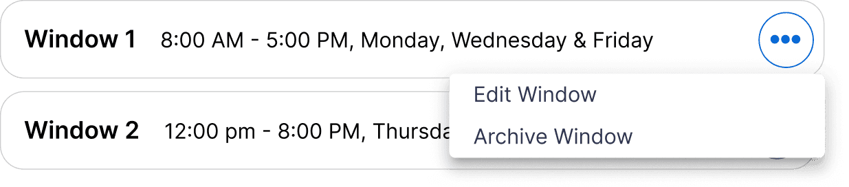 Designed for How Operators Think: Operators need to see more than just their window names; they need each window’s days, times, and service types. Making this information visible upfront reduces guesswork and speeds up decision-making.